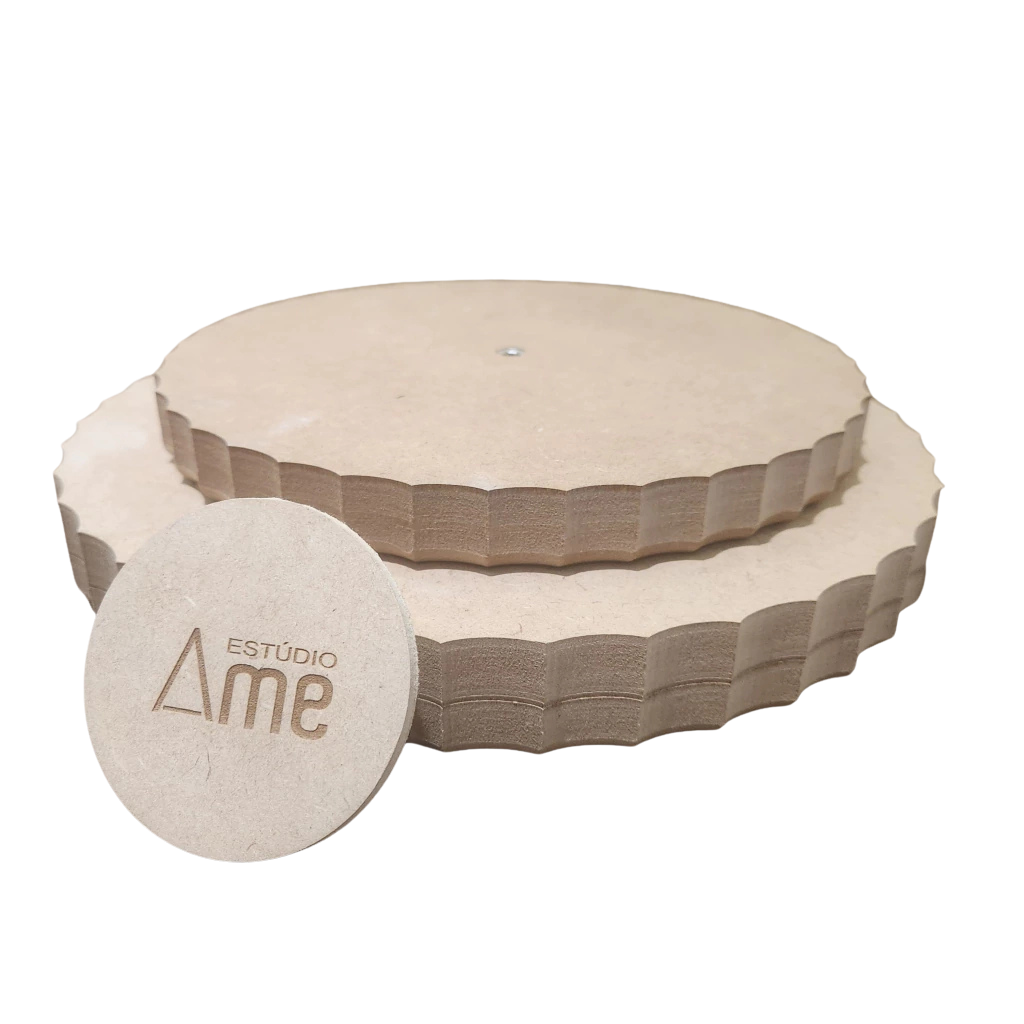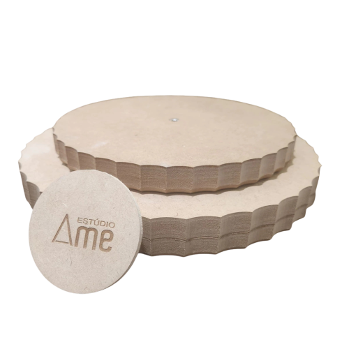 Conjunto de moldes redondos com bordas onduladas e ângulos de 90°.