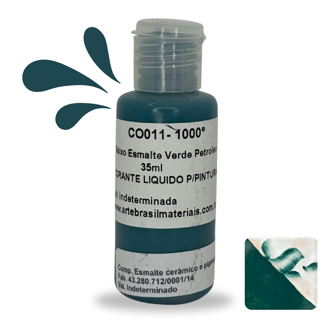O Baixo Esmalte é um corante líquido para cerâmica ideal para técnicas de pintura e decoração de peças. Com excelente fixação e estabilidade, é indicado para queimas de até 1240°C.