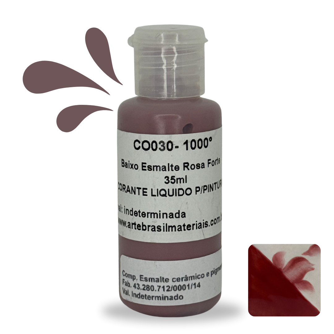 O Baixo Esmalte é um corante líquido para cerâmica ideal para técnicas de pintura e decoração de peças. Com excelente fixação e estabilidade, é indicado para queimas de até 1240°C.