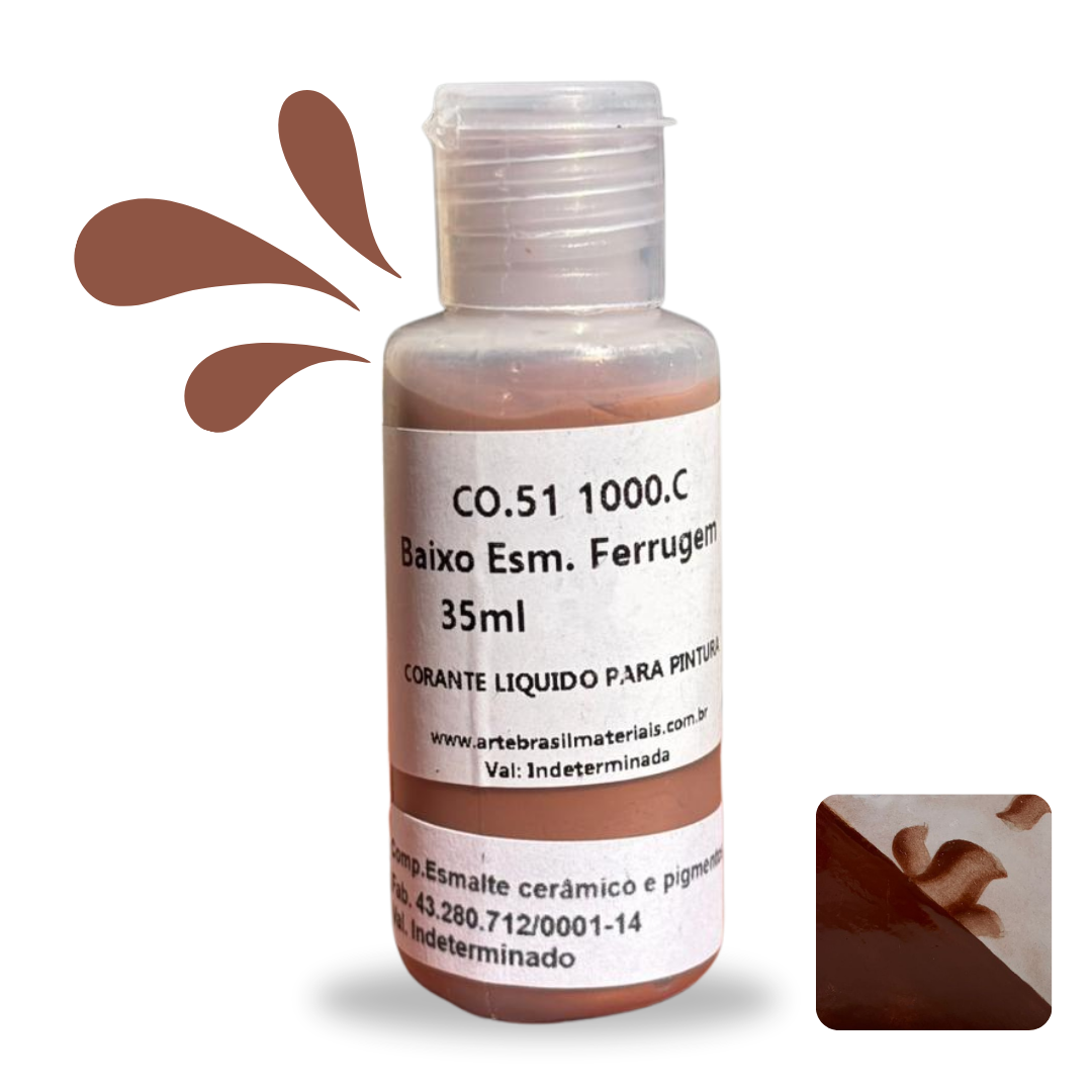 O Baixo Esmalte é um corante líquido para cerâmica ideal para técnicas de pintura e decoração de peças. Com excelente fixação e estabilidade, é indicado para queimas de até 1240°C.