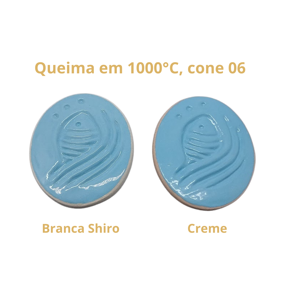 As argilas usadas nas fotos são a Branca Shiro da Pascoal (clara) e a Creme da Pascoal (escura), o biscoito queimado no Cone 07 em 7 horas e o esmalte foi aplicado no pincel com 3 camadas cruzadas queimado no Cone 06 em 7 horas.